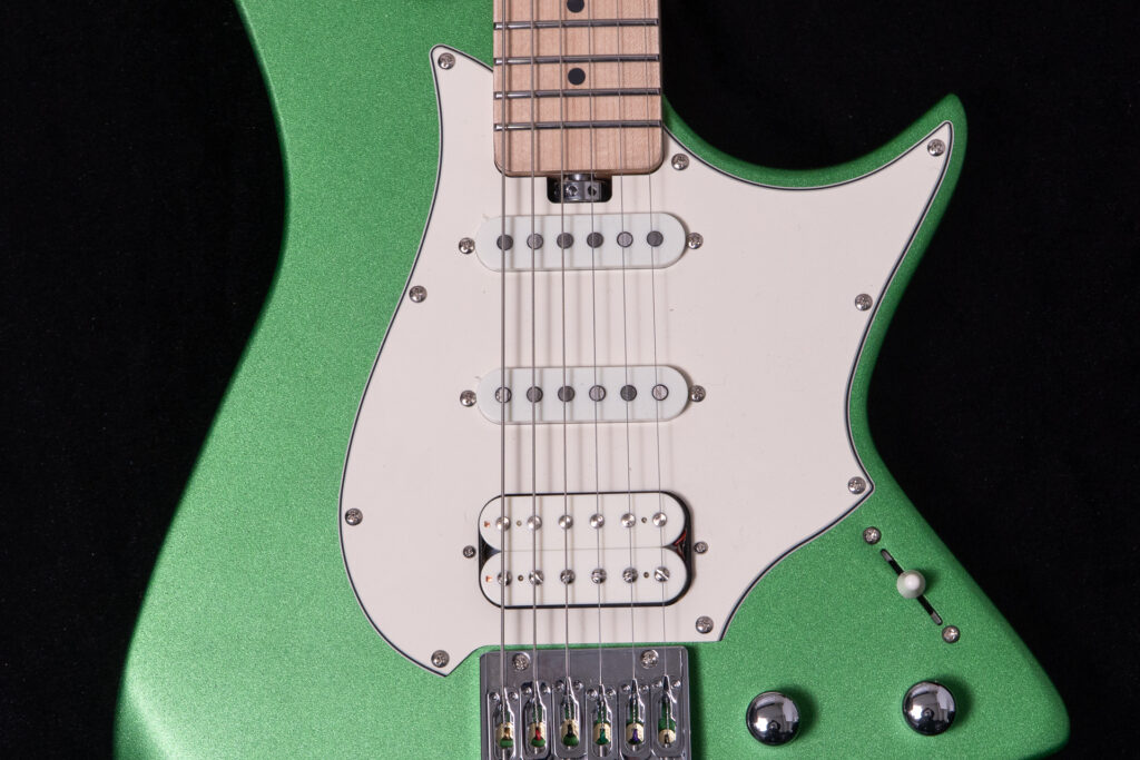 ネック・センターPUとしてはアルニコマグネットのシングルコイルタイプ、ブリッジPUとしてはセラミックマグネットのハムバッキングタイプを採用。クリーンからハイゲインディストーションサウンドまで幅広い音作りに対応します。