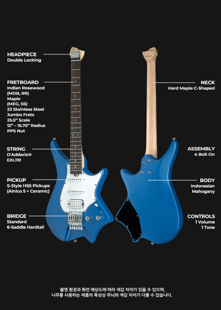 ST系のギターをモチーフにヘッドレスとして発展させた先進的なモデルです。